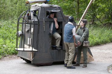 Au cours de leur déambulation, les trois compères présentent les nombreux avantages de la catapulte, arme propre, silencieuse et économique.