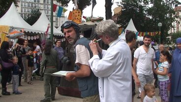 Déambulation burlesque et à saynètes fixes.