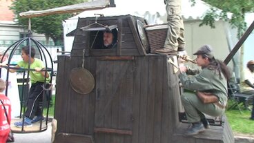 Au cours de leur déambulation, les trois compères présentent les nombreux avantages de la catapulte, arme propre, silencieuse et économique.