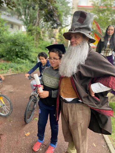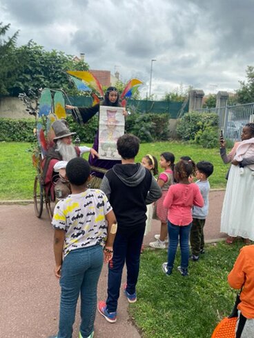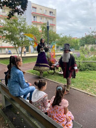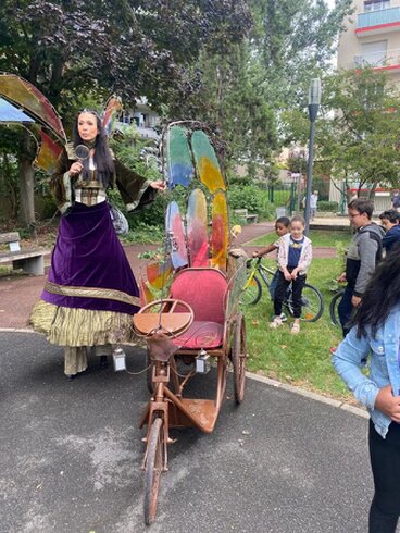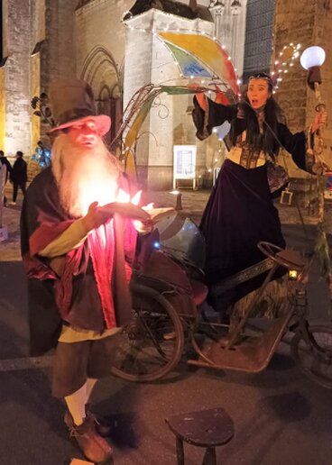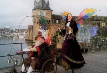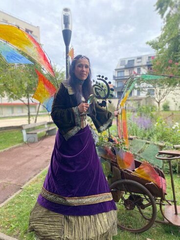 Le public est plongé dans une atmosphère d’autant plus féerique que le tricycle diffuse une douce musique celtique. Il est lumineux, tout comme les ailes d’Eléa, si bien que le spectacle peut être joué de nuit.