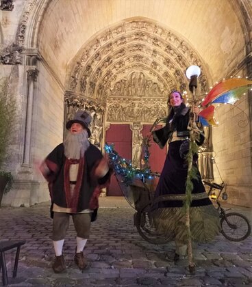 Spectacle de contes et légendes celtiques en promenade et à courtes scènes fixes.